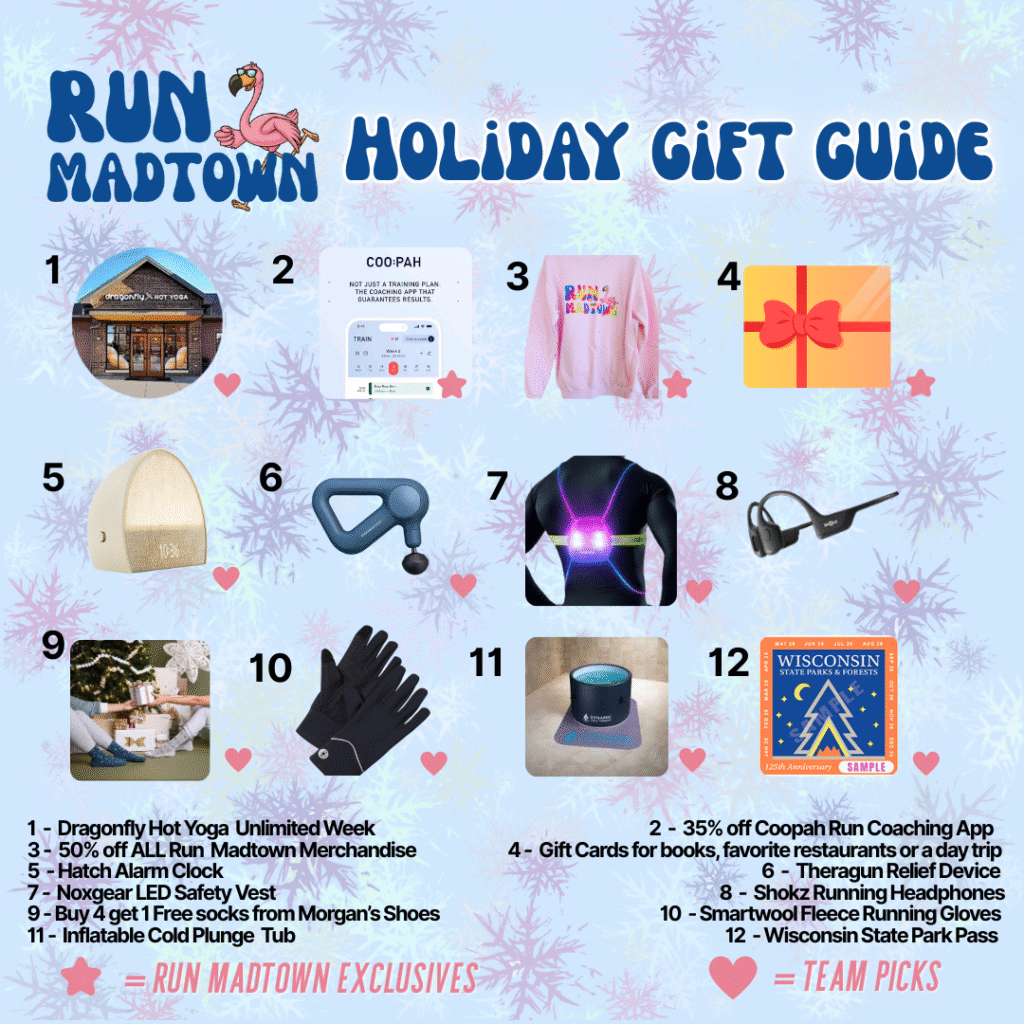 Discover gifts that inspire movement, spark joy, and celebrate the Run Madtown community. From runner-approved gear and local favorites to wellness experiences and exclusive deals, our Holiday Gift Guide is packed with thoughtful ideas for every athlete, adventurer, and flamingo at heart. Shop local, support small, and find the perfect pick for everyone on your list – including yourself!
